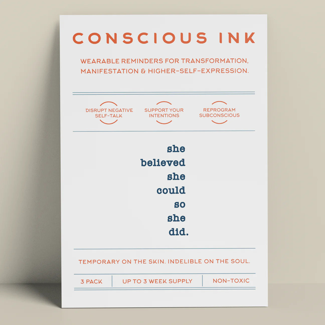 She Believed She Could So She Did Manifestation Tattoo. Well, if she did it, so can you. So, what is it exactly you'd like to do? She Believed She Could So She Did Temporary Tattoo Size: 1.5"x2.5"